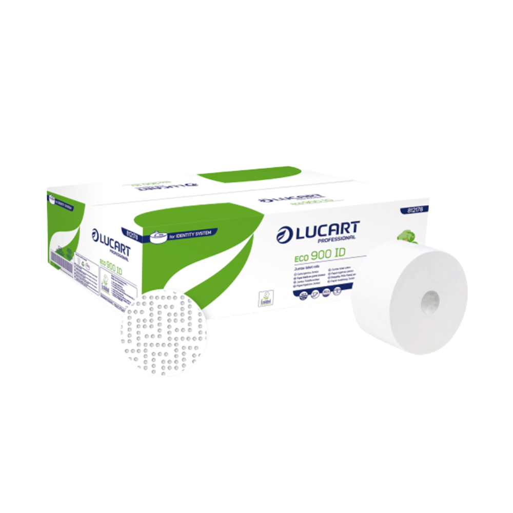 Hârtie igienică Jumbo, Lucart, ECO 900 ID, 2 straturi, fibre reciclate, alb, 202 m/rolă, 12 role/bax – 812178