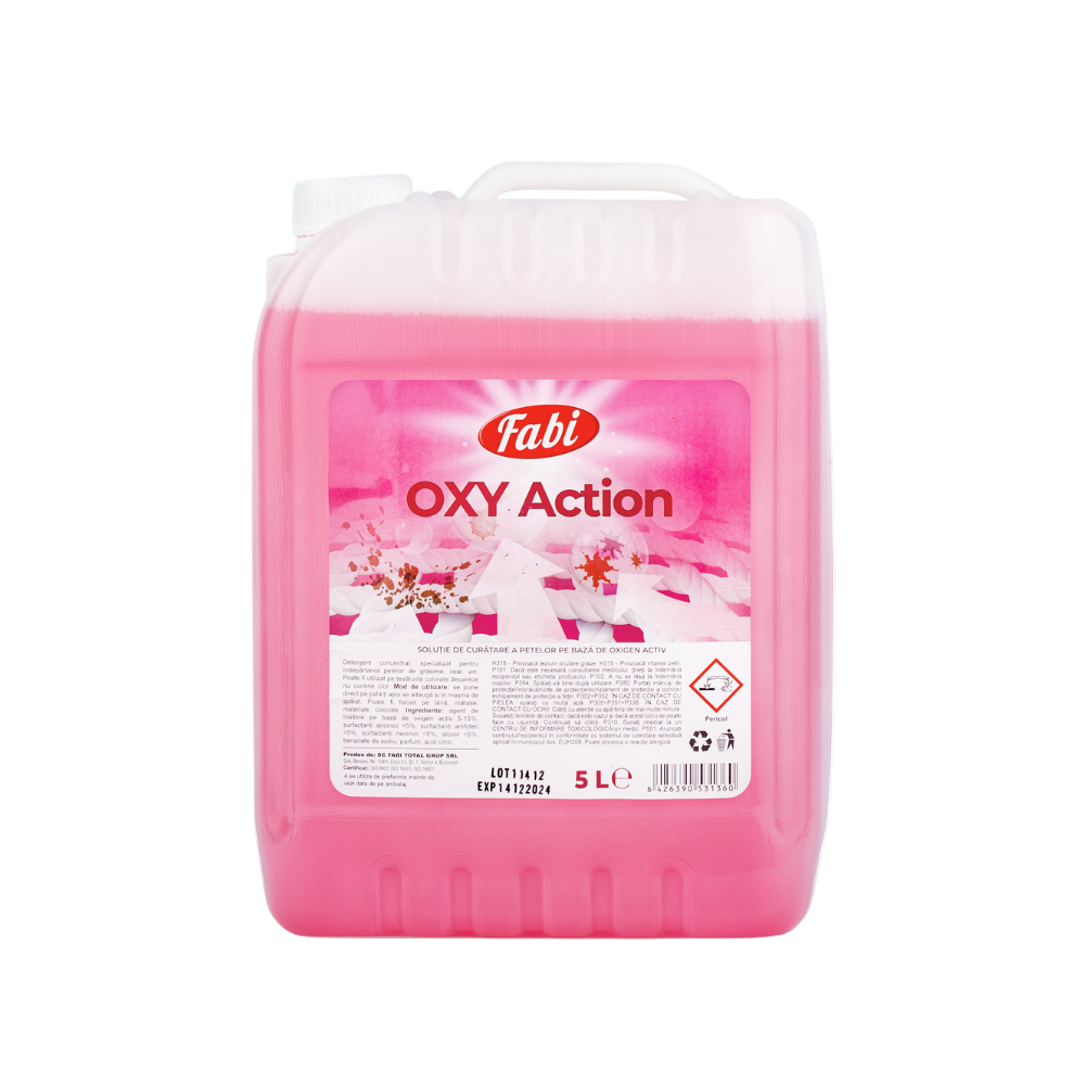 Elimină petele dificile în profunzime cu Fabi Oxy Action, un detergent concentrat pe bază de oxigen activ, creat pentru îndepărtarea eficientă a petelor persistente de grăsime, ceai, vin, cafea, sucuri sau sosuri. Formula sa avansată acționează rapid și sigur pe o gamă largă de textile, inclusiv materiale delicate precum lână, mătase sau haine colorate.