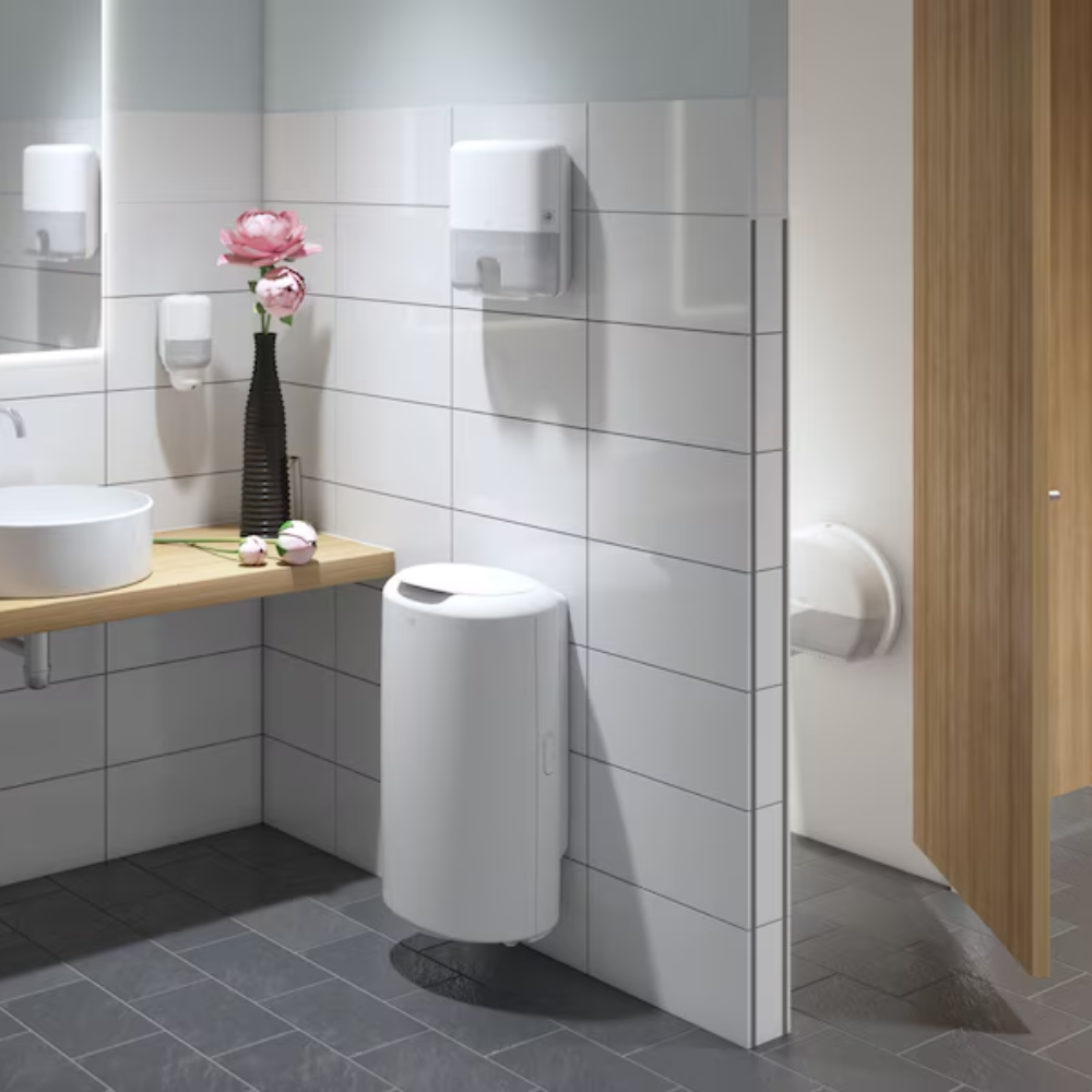 Dispenserul de role de hârtie igienică Tork Mini Jumbo din gama Elevation Design este ideal pentru toaletele cu trafic scăzut și mediu, unde eficientizarea timpului și reducerea costurilor sunt puse pe primul plan.