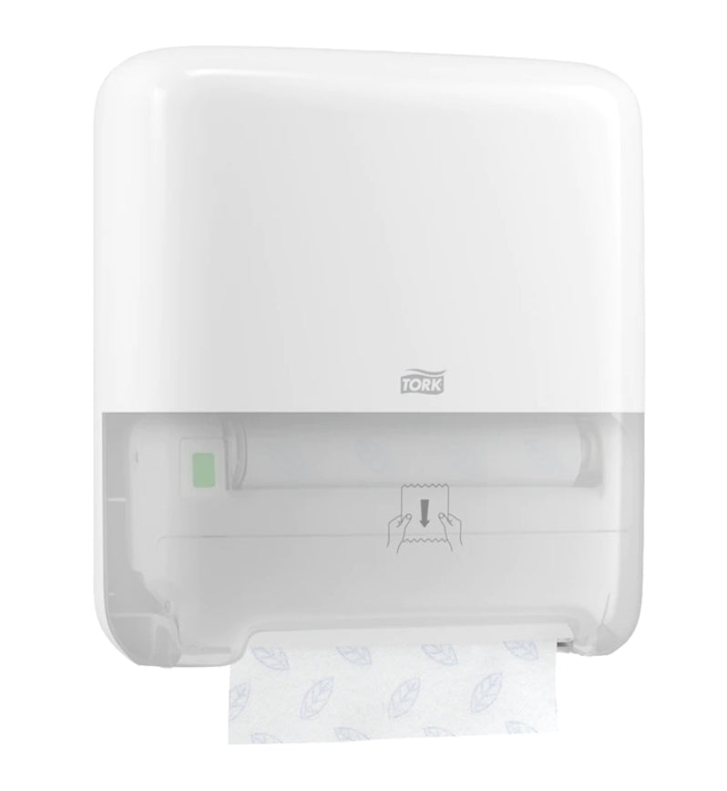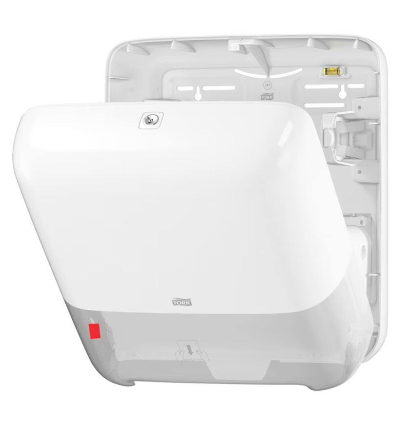 Descoperiți Dozatorul Tork Matic® Elevation (sistem H1), soluția ideală pentru toaletele cu trafic intens. Acest dozator inteligent nu doar că arată excelent, dar reduce semnificativ consumul de prosoape prin dozare controlată, porție cu porție, optimizând costurile de operare.