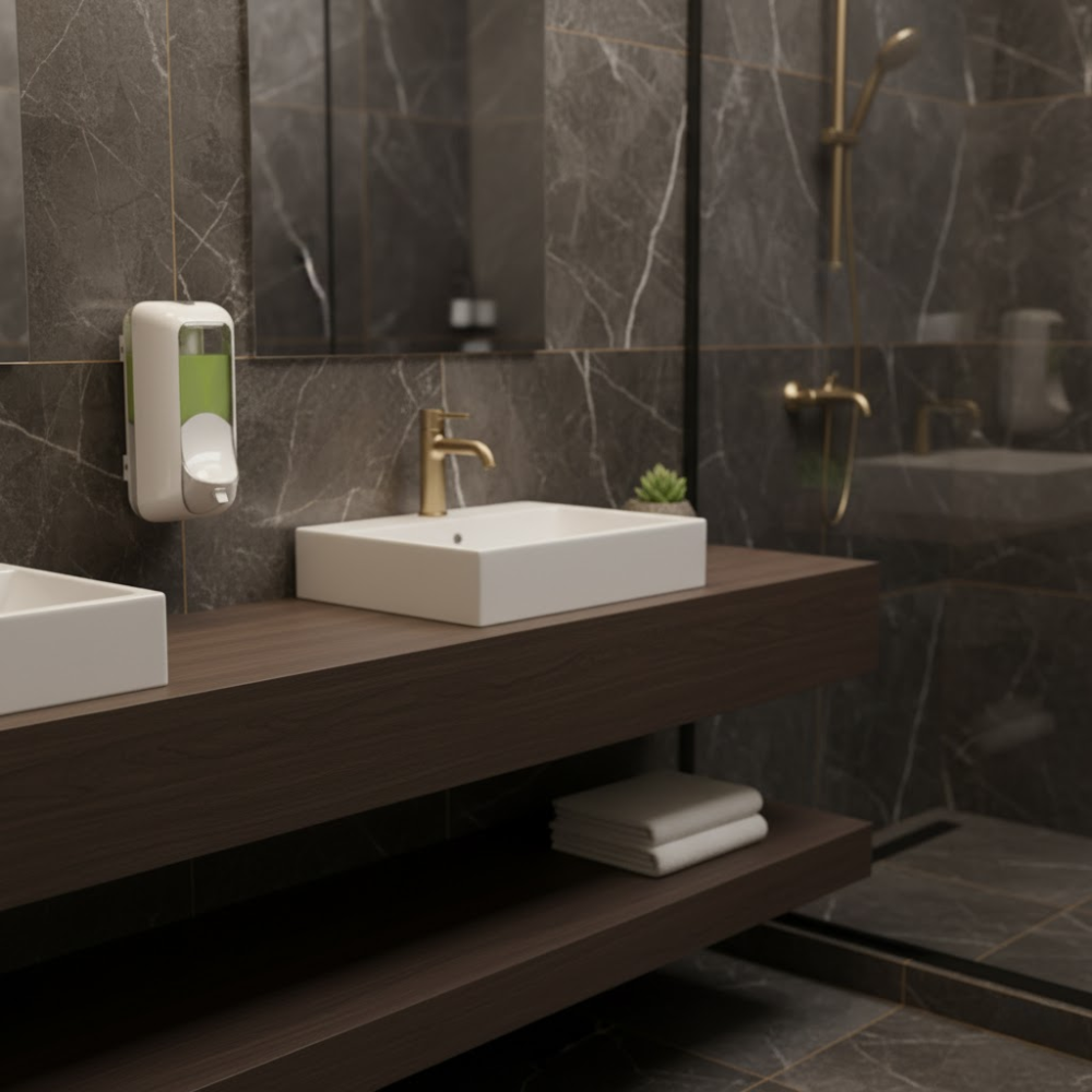 Vizibilitate ușoară a conținutului – capacul frontal semi-transparent permite verificarea rapidă a nivelului de săpun.