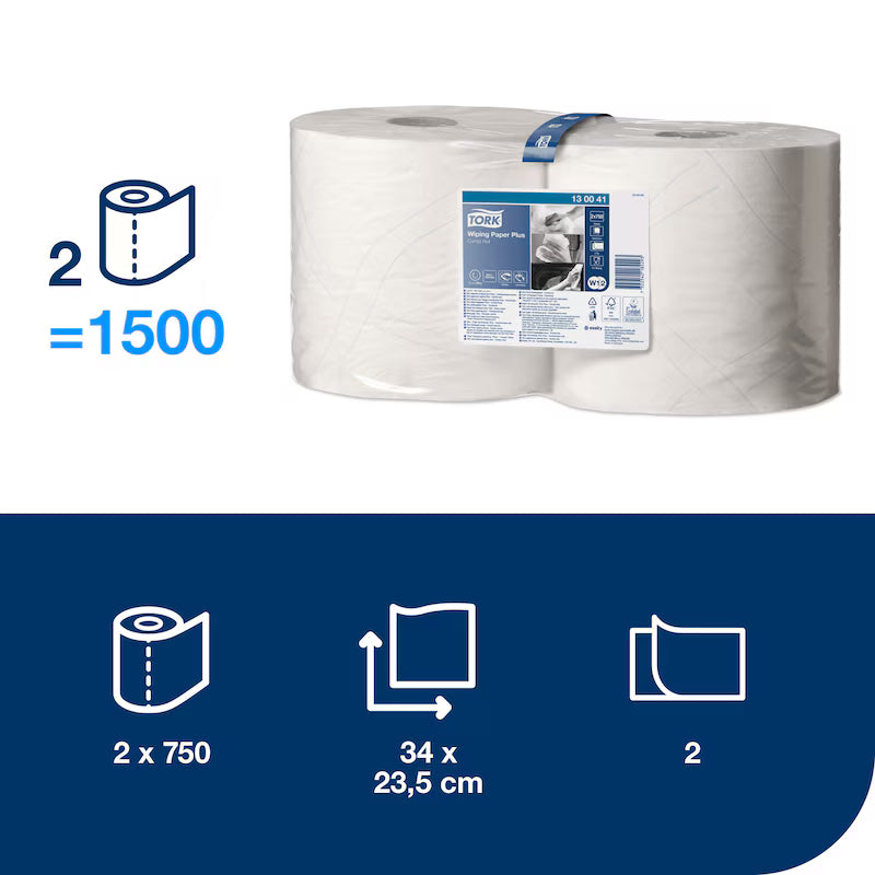 Hârtie de șters, Tork, Combi Plus, alb, 2 straturi, 2 x 255 m, 2 x 750 porții, W1/W2, 2 role – 130041