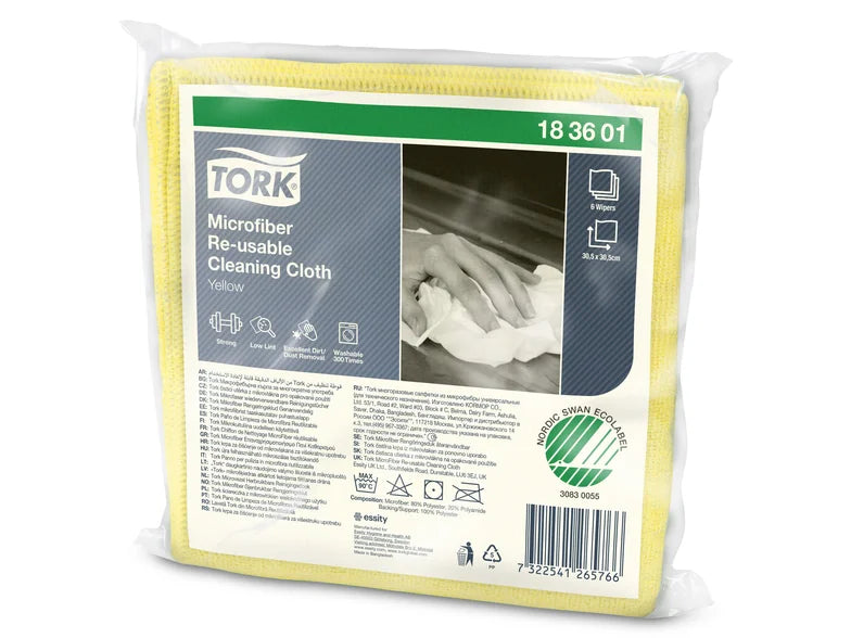 Lavete microfibră, Tork, galbene, 6 bucăți/pachet, 6 pachete/bax, 30.5×30.5 cm, 183601