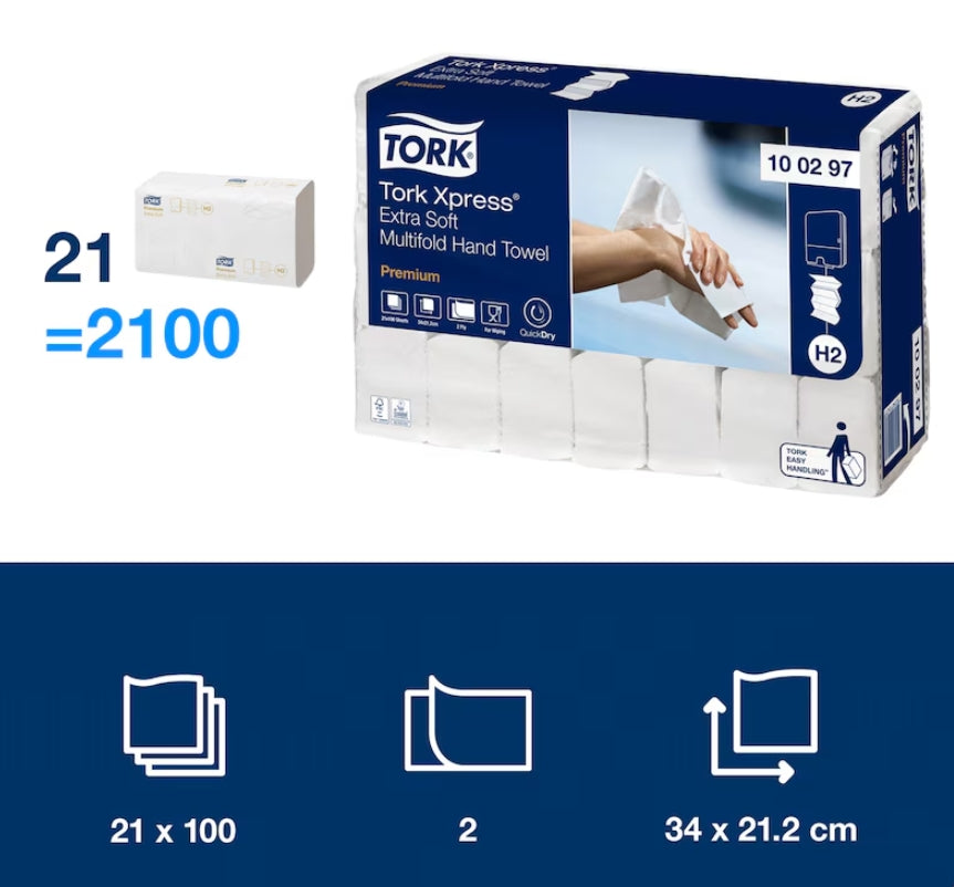 Prosoape pentru Mâini, Tork Xpress® Extra Soft, Multifold, H2 (21 PAC/BAX) - 100297